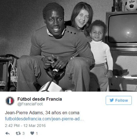 Il avait une carrière fulgurante dans le football. Il nest pas branché et respire. DOCUMENT RTL - Plongé dans le coma depuis 32 ans lancien footballeur Jean-Pierre Adams est dans un état végétatif.